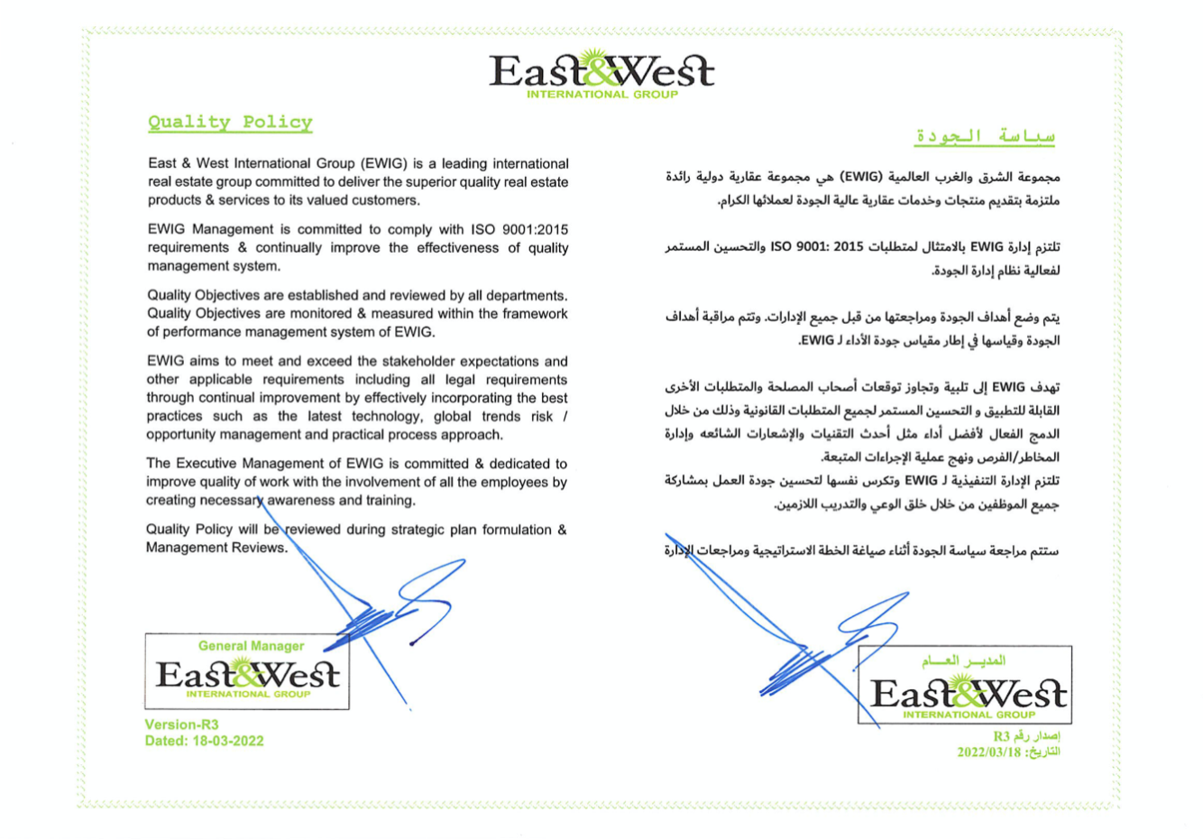 East & West International Group (EWIG), is a leading international real estate group committed to deliver the superior quality real estate products & services to its valued customers.