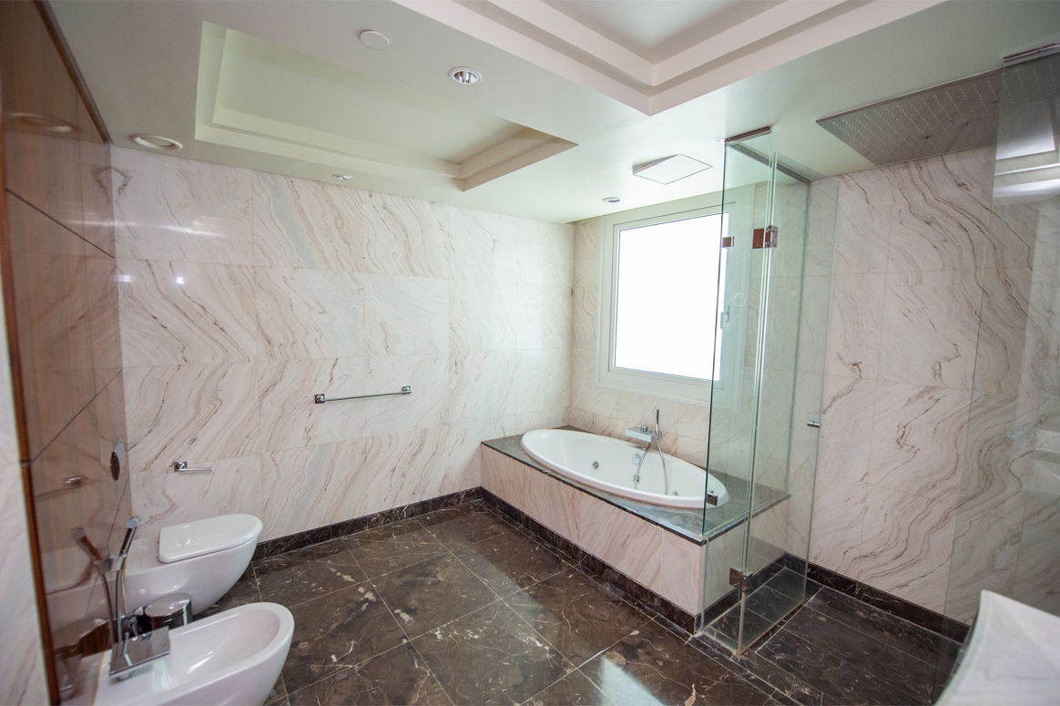 The residential building, Marina Residence 6, is in plot 1998, Palm Jumeirah, Dubai. It consists of 5 different units, one 5-bedroom apartment, one 4-bedroom apartment, and three 2-bedroom apartments. Centralized AC (Empower) is available alongside other facilities as Covered Parking, Gym, Pool, Sauna and Steam.